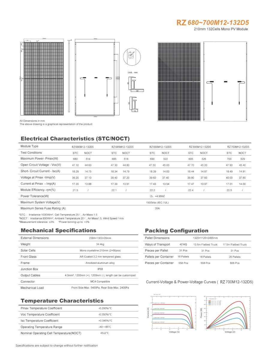1.1 700W 132cells D5White Grid Back Glass